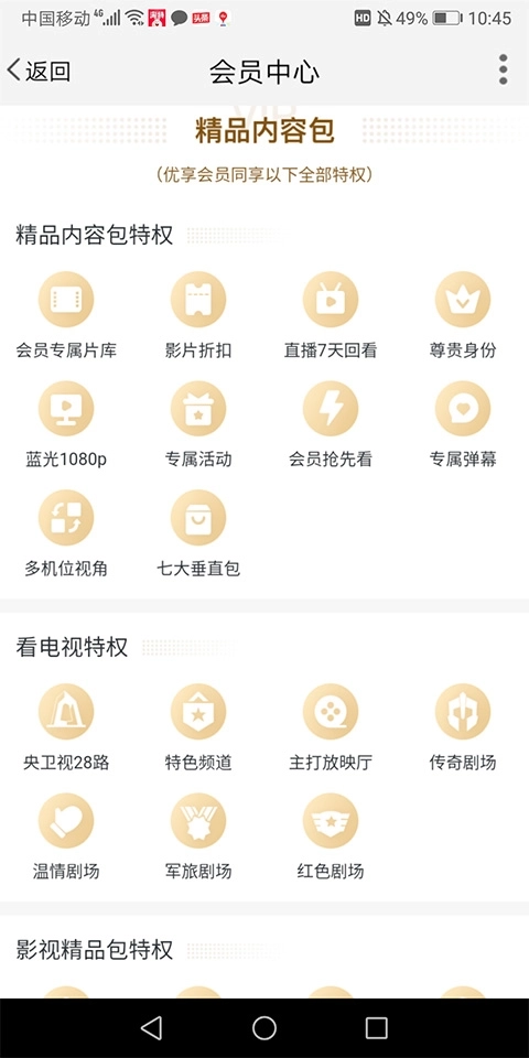 订购了优享会员的用户其权益包含的呢精品包权益,包含看电视、影视、体育、儿童、游戏、云演艺、长辈这些垂直频道内容