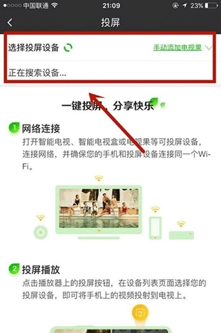 4、在投屏页面,可手动搜索设备,也可让系统自动进行匹配设置。